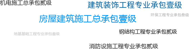 2018年9月18日取得消防設(shè)施工程專業(yè)承包二級、建筑裝修裝飾工程專業(yè)承包二級、市政公用工程施工總承包三級、機電工程施工總承包三級、地基基礎(chǔ)工程專業(yè)承包三級、鋼結(jié)構(gòu)工程專業(yè)承包三級、環(huán)保工程專業(yè)承包三級資質(zhì)證書