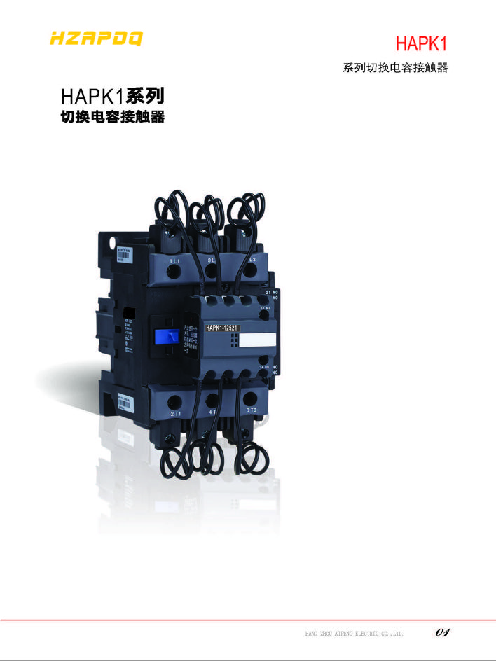 HAPK1系列切換電容接觸器(以下簡(jiǎn)稱接觸器)為交流50Hz(或60Hz),額定絕緣電壓為690V,在AC-6b使用類別下,額定工作電壓為400V時(shí)額定工作電流至87A,廣泛用于低壓無(wú)功補(bǔ)償設(shè)備中,通斷電容器組。接觸器附有抑制浪涌裝置,能有效地減少合間涌流對(duì)電容器組的沖擊和降低過電壓