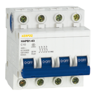 - Product description: HAPB1系列高分斷小型斷路器具有結構先進、性能可靠、分斷能力強、外型美觀小巧等特點,殼體和三部件采用耐沖擊、高阻燃材料構成。適用于交流50Hz或60Hz、額定工作電壓為400V及以下、額定電流6A至63A的場所。主要用于辦公樓、住宅和類似的建筑物的照明、配電線路及設備的過載、短路保護,也可以在正常情況下,作為線路不頻繁的轉換之用。產品符合IEC60898 和GB10963等標準的要求。